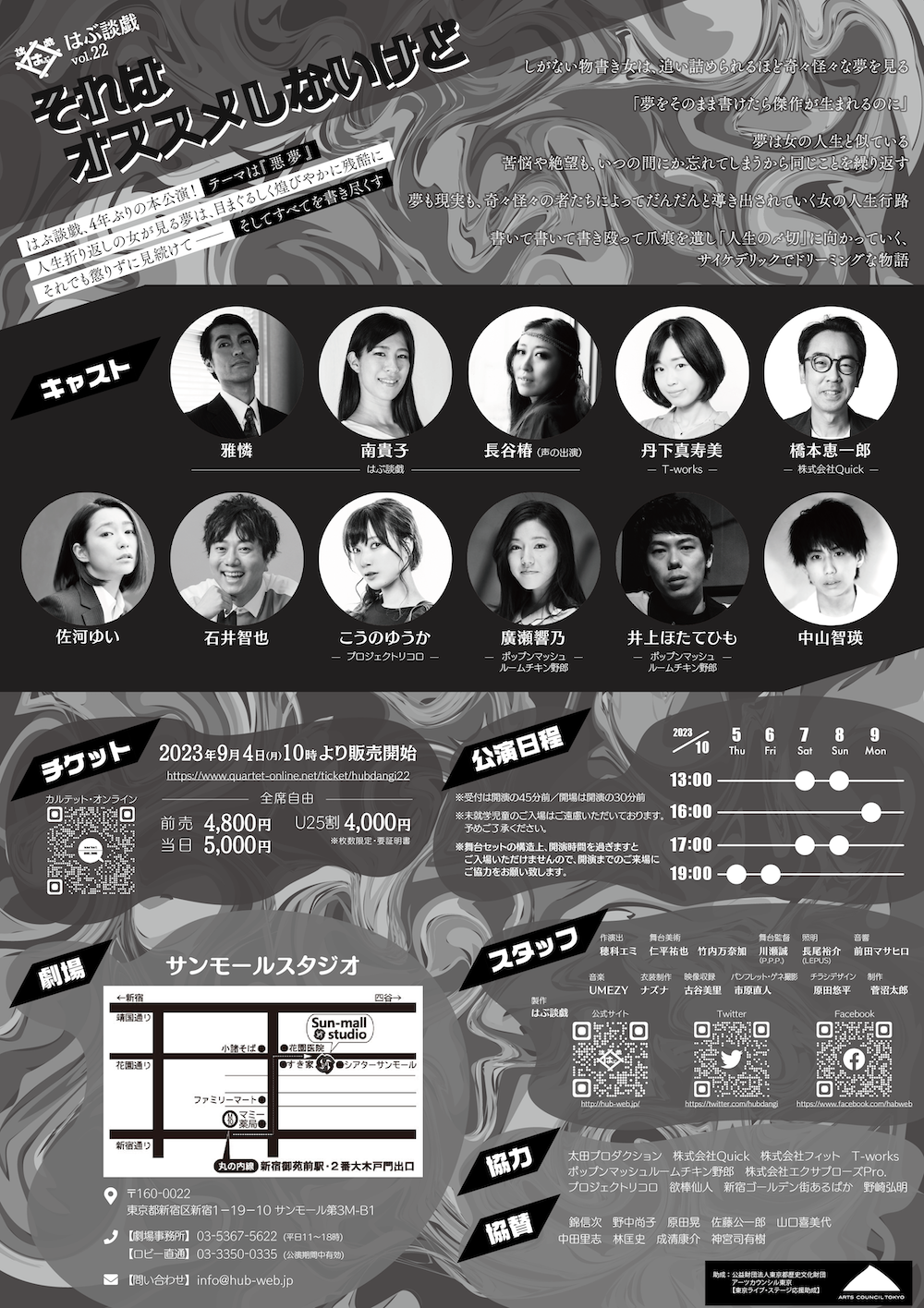 一般発売/9月4日(月) 10時https://www.quartet-online.net/ticket/hubdangi22