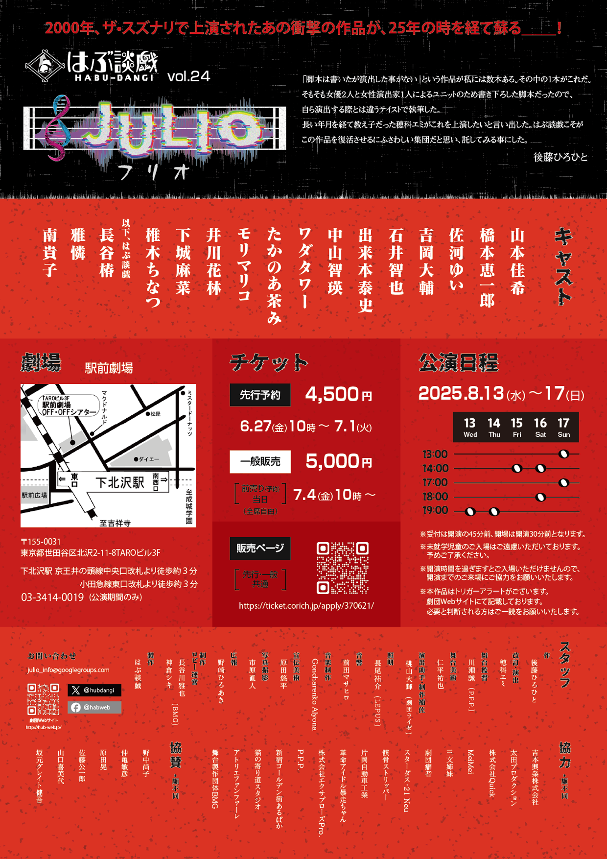 はぶ談戯Vol.24『JULIO‐フリオ‐』のご観劇をご検討いただき、誠にありがとうございます。
